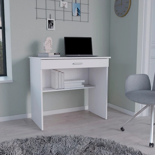 Computer Desk with Drawers, White Office Desk with Storage Cabinet, Study Writing Table for Home Office, Bedroom