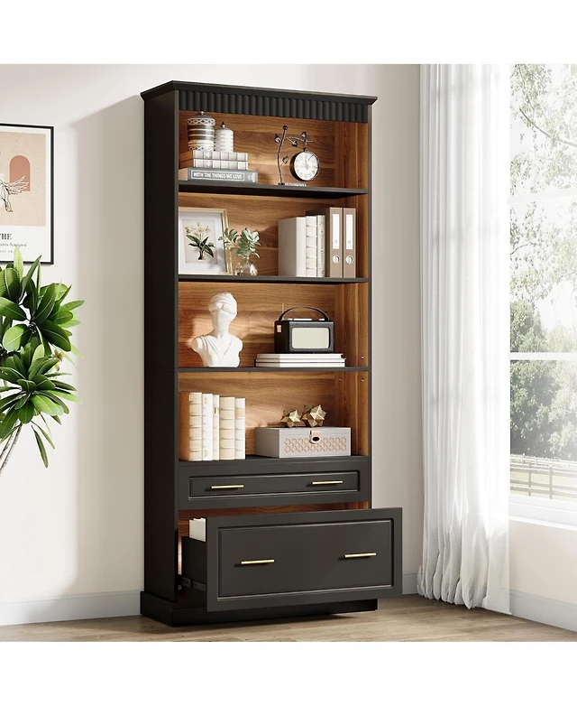 Streamdale 70.87" Display Cabinet, 4-Tier Shelf, Drawers, Modern Wooden Bookshelf