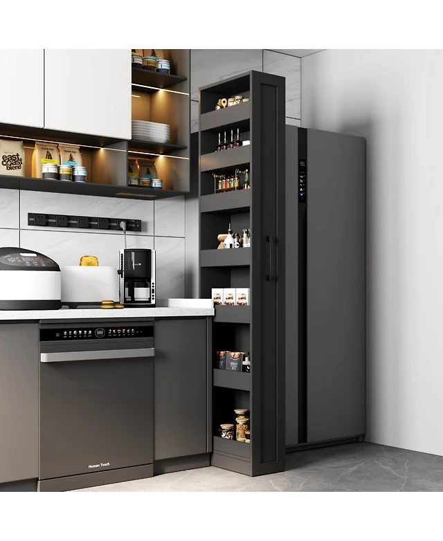 Streamdale Furniture 5-Tier Bookshelves (Set of 2), Two-Tone Cabinet, 72"H Pantry - Black