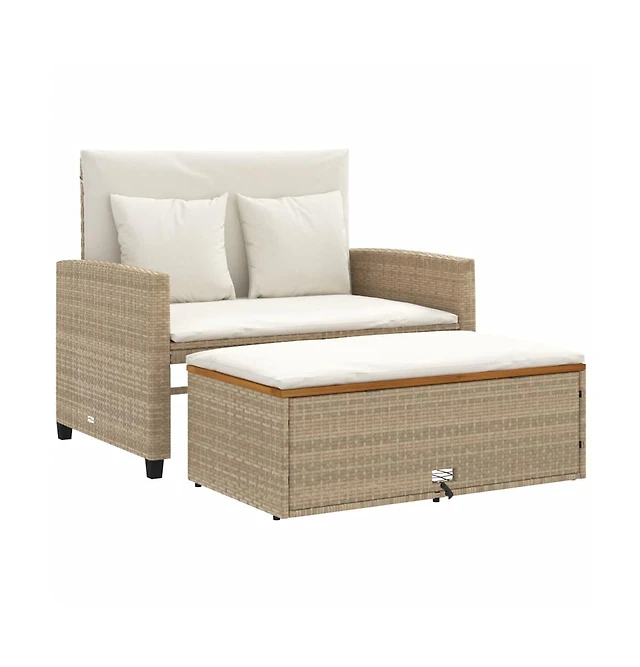 Garden Sofa Beige Pe rattan, powder-coated steel, polyester fabric