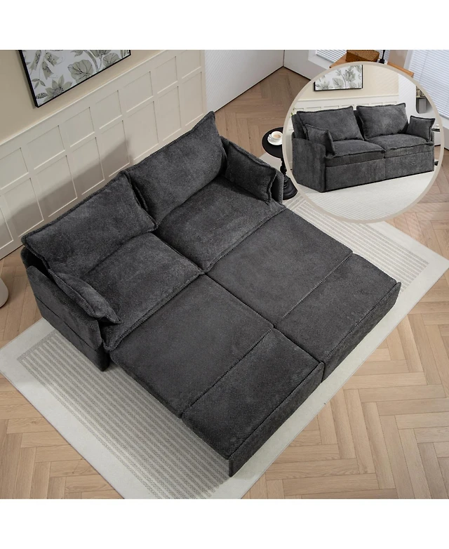 Streamdale Furniture Mh" 64.5" Corduroy Sleeper Sofa Bed - Pullout Pillows & Pockets