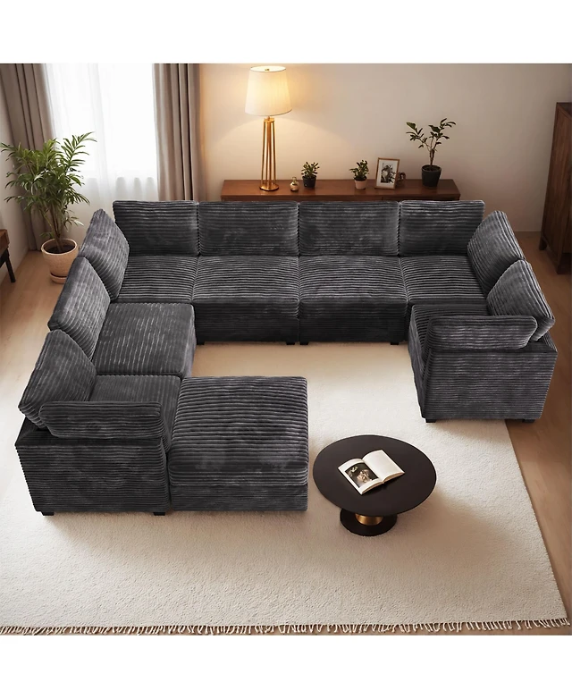 gaomon 112" Modular Sectional Sofa, U Shaped Cloud Couch with Deep Seats, Armrests, Plush Corduroy Fabric, No Assembly Required