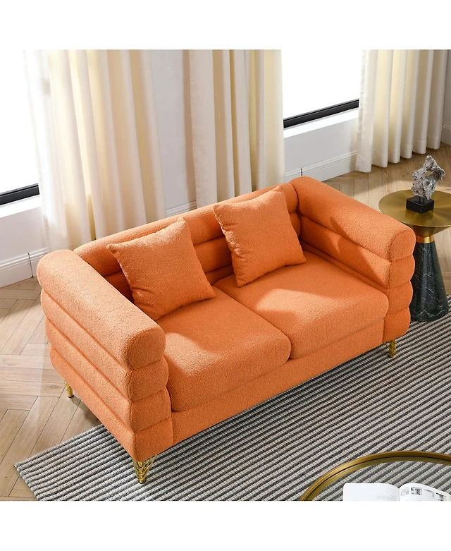 Streamdale Furniture Streamdale Velvet Sofa with Tufted Square Arms and Metal Legs 2 Seater