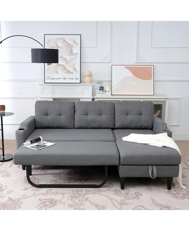 Streamdale Convertible Sleeper Sofa Bed 90" L-Shaped Sectional with Pull-Out Bed