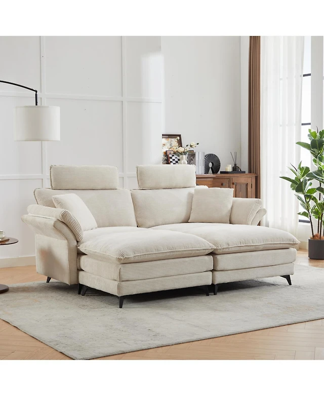 Streamdale Cream Corduroy 3-Seat Sofa with Ottomans & Sleeper