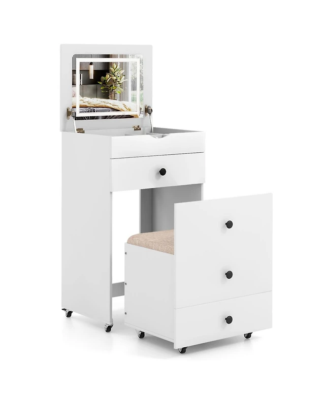 Sugift 3-in-1 Vanity Set with Cushioned Stool and Flip-up Mirror