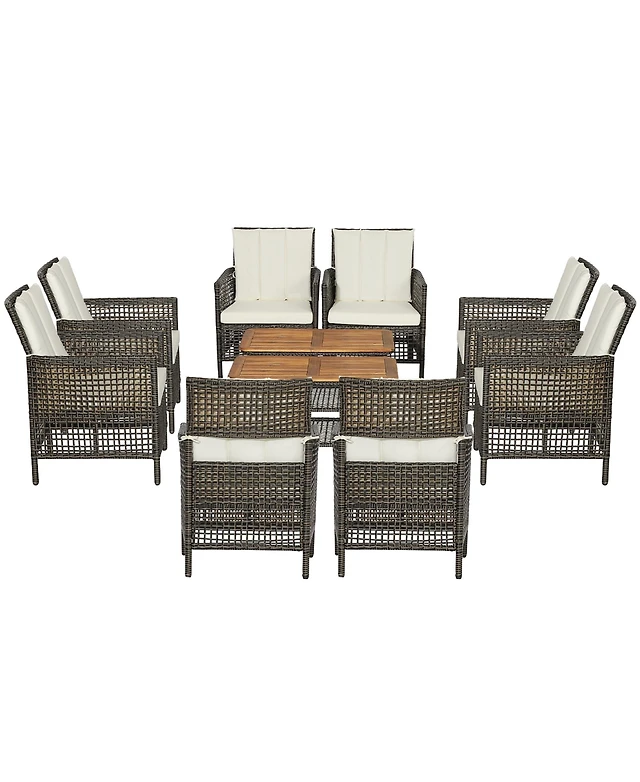 Costway 10PCS Patio Rattan Furniture Set Cushioned Sofa Armrest Wooden Tabletop