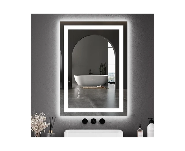 gaomon Led Bathroom Mirror 20X28“ Wall-Mounted Vanity Mirrors Stepless Dimmable Wall Mirrors with Anti-Fog, Backlit + Front Lit, Memory Functio