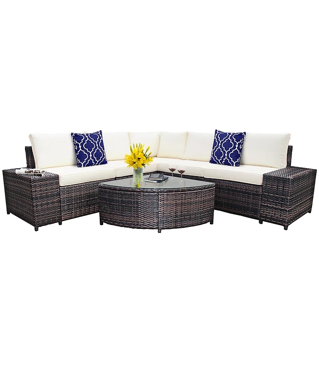 Xizzi Outdoor Patio Furniture Set,6 Pieces Rattan Sectional Set,Outside Coversation Set with Extra Deep Sofa Couch and Solar C