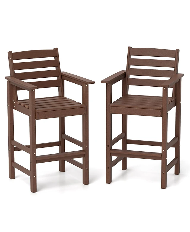 Patio Hdpe Adirondack Bar Chairs Set of 2 with Wide Armrests