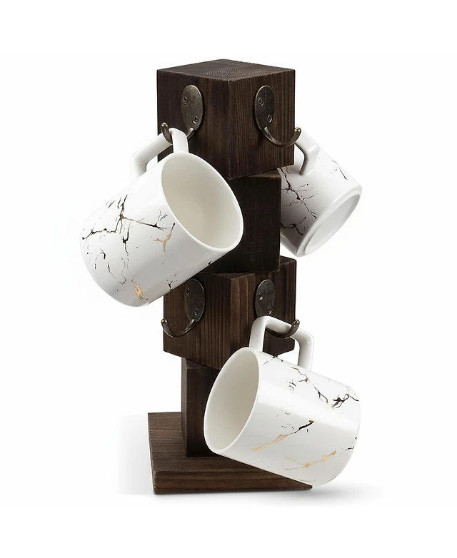 Yigii Premium Wood Mug Tree Marble Base 6 Hooks Counter Organizer