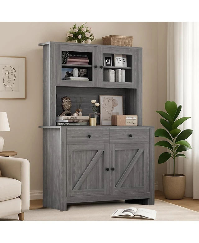 gaomon Microwave Stand Bakers Rack Cabinet, Farmhouse with Power Outlet Thickened Counter, Freestanding Small Kitchen