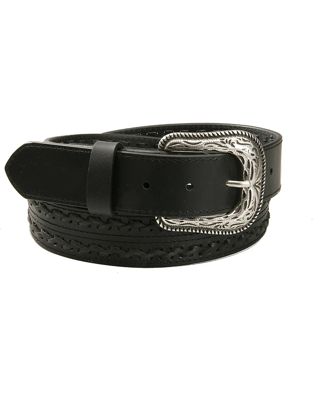 M & F Western Men's Basketweave Floral Filigree Leather Belt