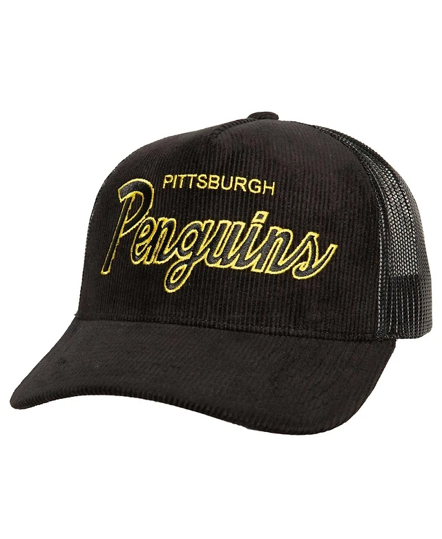 Men's Mitchell & Ness Black Pittsburgh Penguins Times Up Classic Script Cord Trucker Adjustable Hat