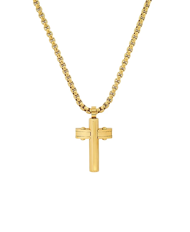Steeltime Men's 18k Gold Plated Stainless Steel and Simulated Diamonds Cross Pendant