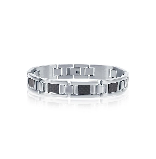 Metallo Mens Stainless Steel Black Carbon Fiber Link Bracelet