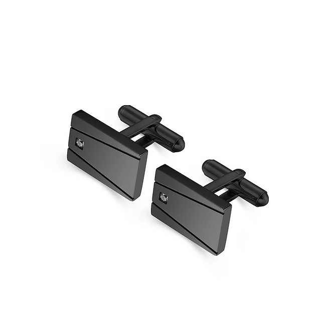 Stainless Steel Black Plated Rectangle w/ Single Cz Cuff Links