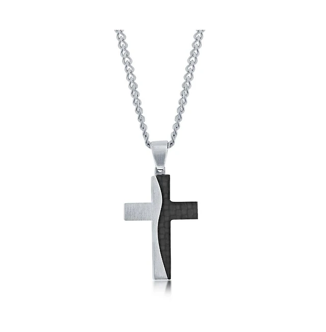 Men's Stainless Steel Black & Silver Single Cz Cross Necklace