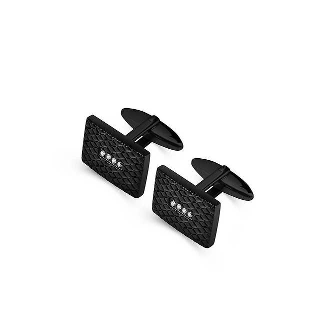 Stainless Steel Rectangle Checkered Design w/ Cz Cuff Links - Black Plated