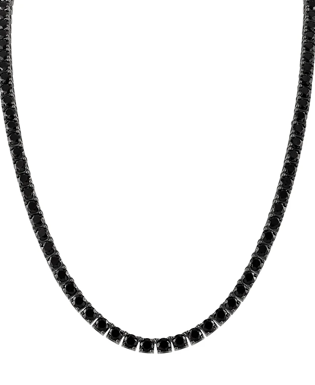 Men's Stainless Steel Black & Silver Single Cz Dog Tag Necklace