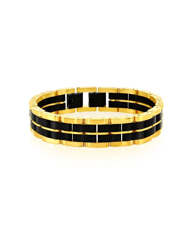 Metallo Stainless Steel, Two-Tone Double Striped Linked Bracelet