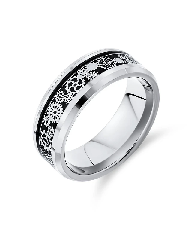 Bling Jewelry Plain Simple Wide Dome Silver Black Gold Plated Titanium Band Ring Comfort Fit 8MM