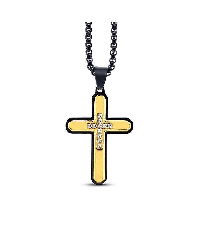 Men's Diamond Openwork Cross 22" Pendant Necklace (1/2 ct. t.w.) in 14k Gold-Plated Sterling Silver