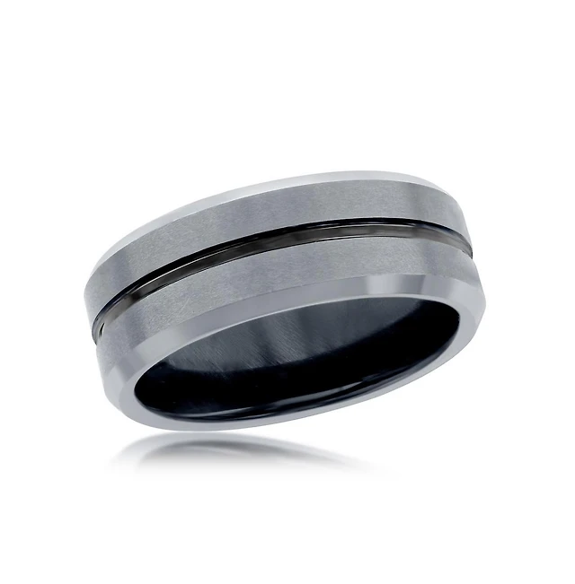 Triton Men's Two-Tone Textured Insert Wedding Band Titanium