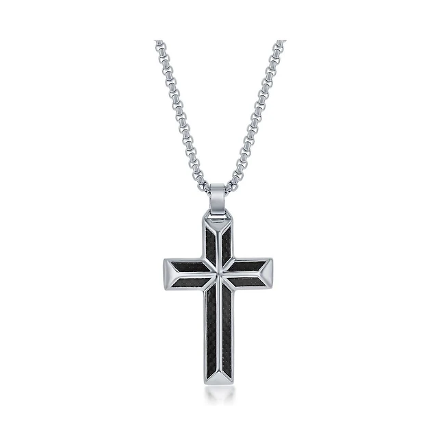 Steeltime Men's Black Ip Stainless Steel Spring Inlay Cross 24" Pendant Necklace