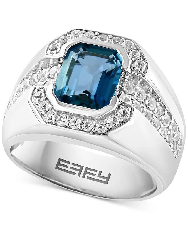 Effy Men's London Blue Topaz (4-3/8 ct. t.w.) & White Topaz (1/2 ct. t.w.) Ring in Sterling Silver