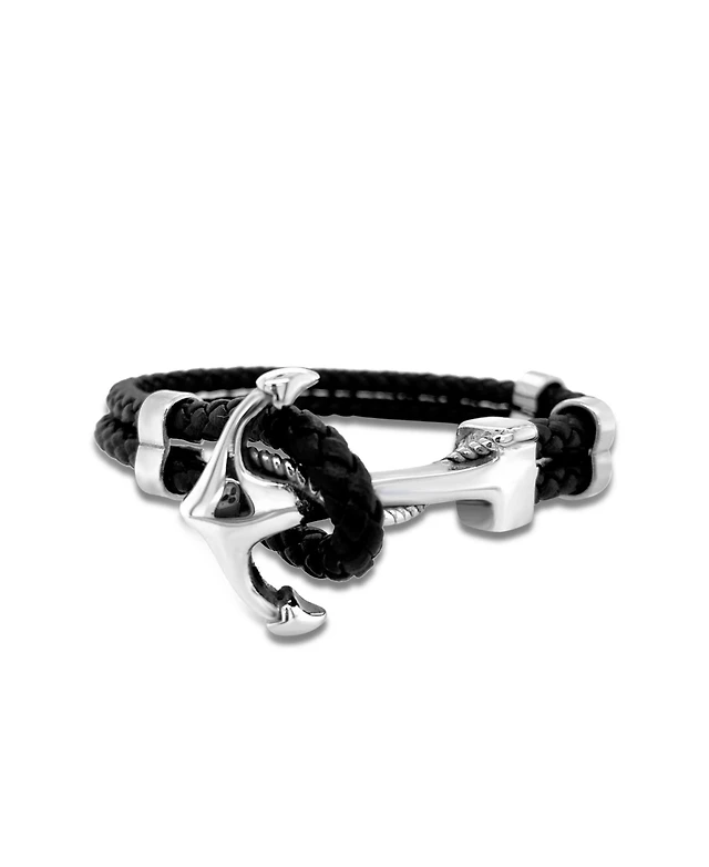 Legacy for Men by Simone I. Smith Black Leather Bracelet Stainless Steel