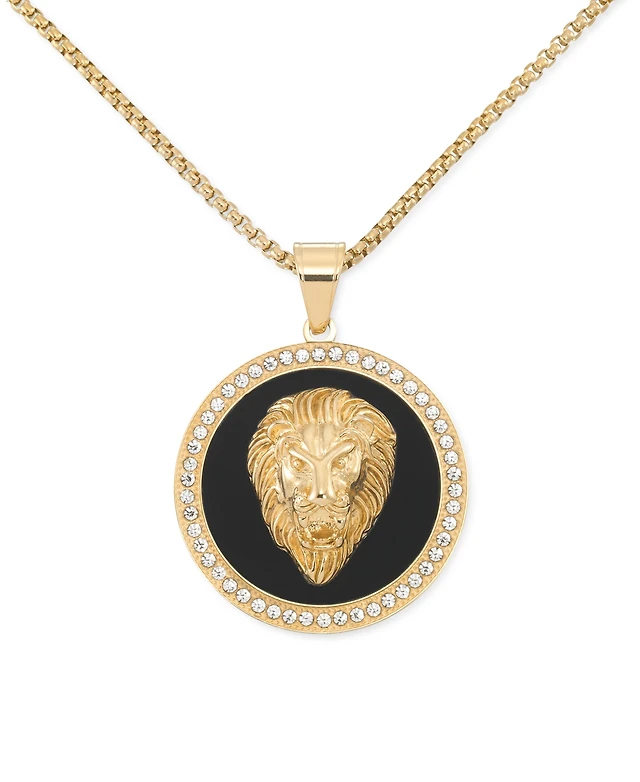 Effy Men's Onyx & Black Spinel (1-1/5 ct. t.w.) Lion Dog Tag 22" Pendant Necklace in Sterling Silver & 14k Gold-Plate
