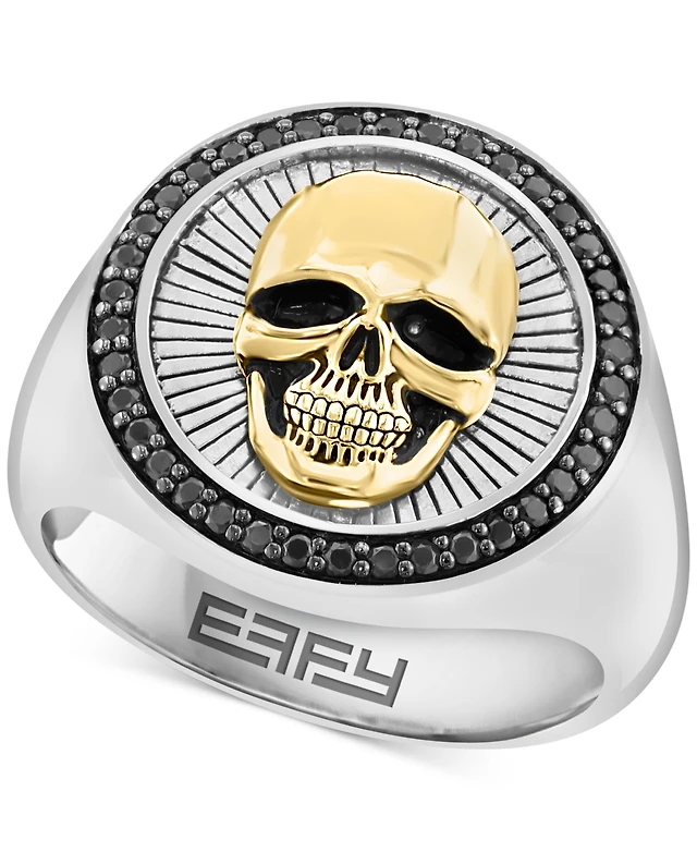 Effy Men's Black Spinel Skull Head Round Disc Ring (3/8 ct. t.w) in Sterling Silver, 14k Gold-Plate, & Black Rhodium-Plate