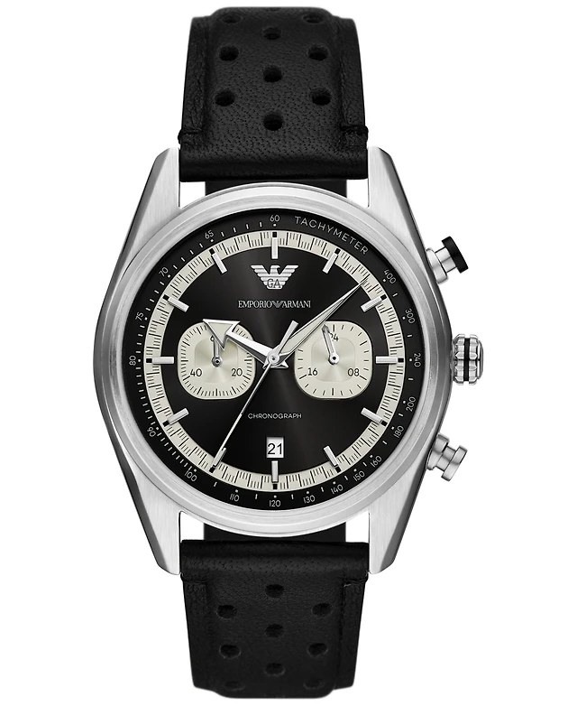Movado Men's Datron Swiss Quartz Chrono Black Leather Watch 41mm