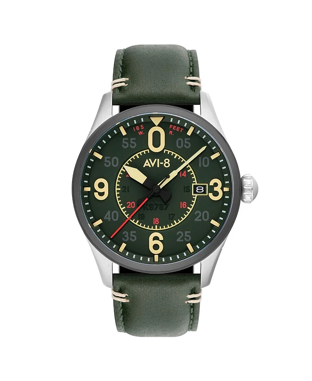 Avi-8 Men's Spitfire Smith Automatic Green Leather Strap Watch, 42mm