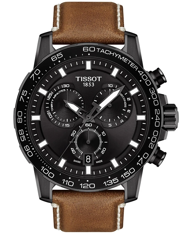 Tissot Men's Swiss Chronograph Xl Vintage Brown Leather Strap Watch 45mm