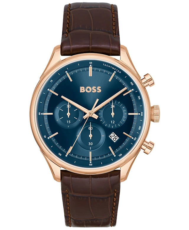 Hugo Boss Men's Gregor Quartz Chronograph Brown Mock Genuine-Grained Leather Strap Watch 45mm