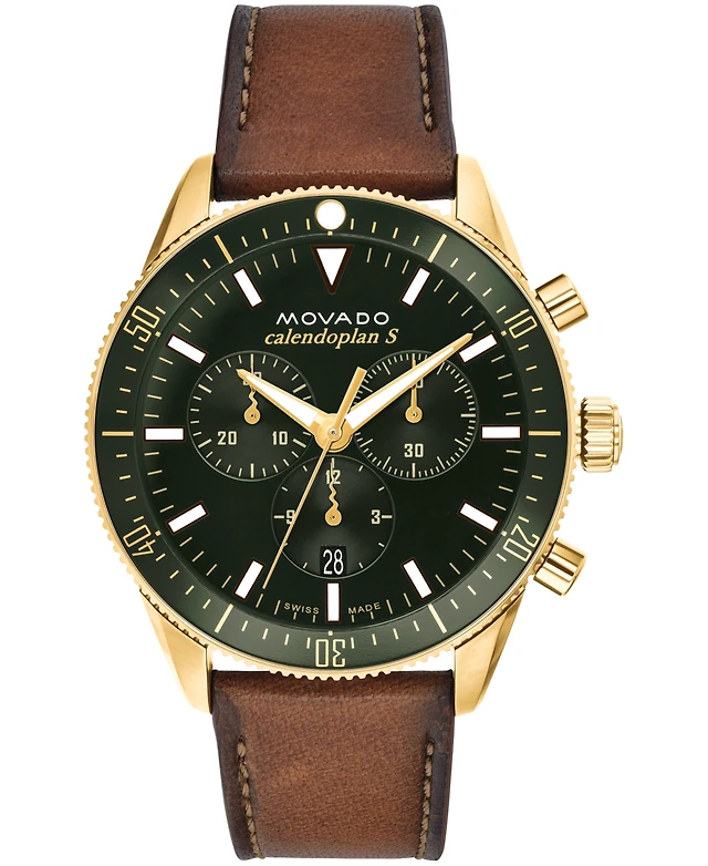 Movado Men's Calendoplan S Swiss Quartz Chronograph Gray Leather Strap Watch 42mm