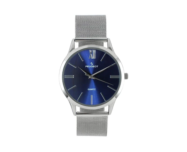 Peugeot Men's White Dial Super Slim Watch with Black Leather Band