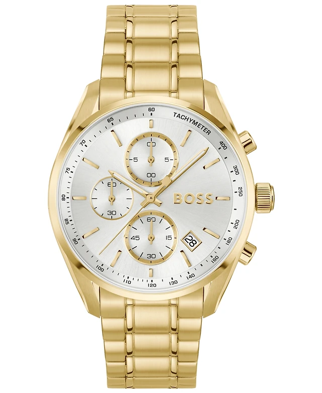 Hugo Boss Men's Grand Prix 40 Quartz Fashion Chrono Ionic Plated Thin Gold Steel Watch, 40mm