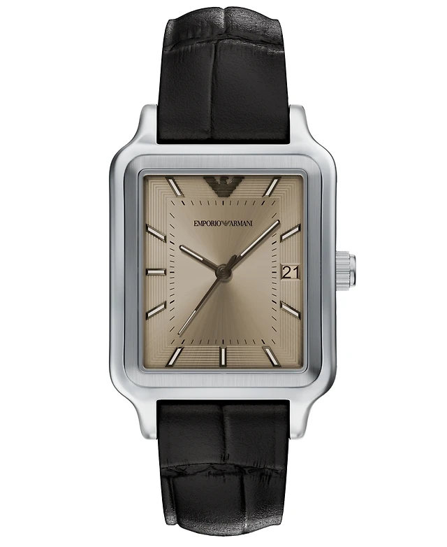 Emporio Armani Men's Black Leather Strap Watch 44mm