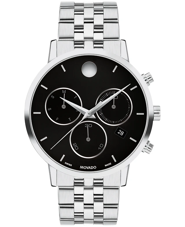 Movado Men's Museum Classic Swiss Quartz Chrono Silver Tone Stainless Steel Watch 42mm