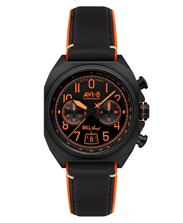 Avi-8 Men's Bell X-1 Black Leather Strap Watch, 41mm