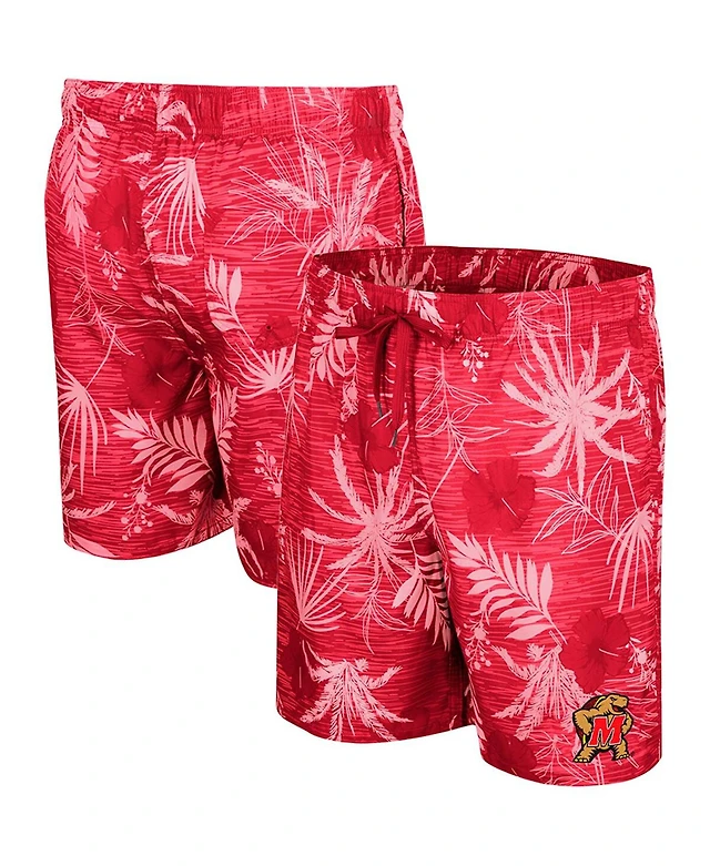 Wes & Willy Men's Maroon Mississippi State Bulldogs Floral Volley Logo Swim Trunks