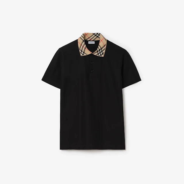 Check Trim Cotton Polo Shirt in Black - Men | Burberry® Official
