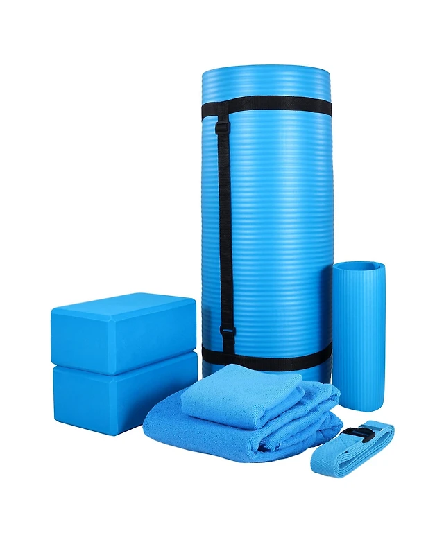 BalanceFrom Fitness 7 Piece Yoga Set with Mat, Stretch Strap, & Knee Pad