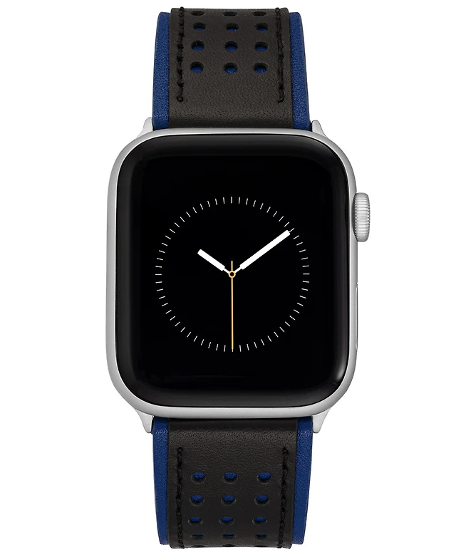 Vince Camuto Men's Black and Premium Leather Band with Perforated Design Compatible with 42/44/45/Ultra/Ultra 2 Apple Watch