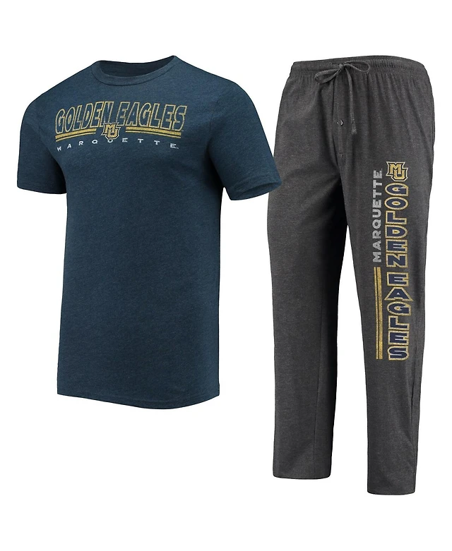 Men's Concepts Sport Heathered Charcoal, Navy Marquette Golden Eagles Meter T-shirt and Pants Sleep Set