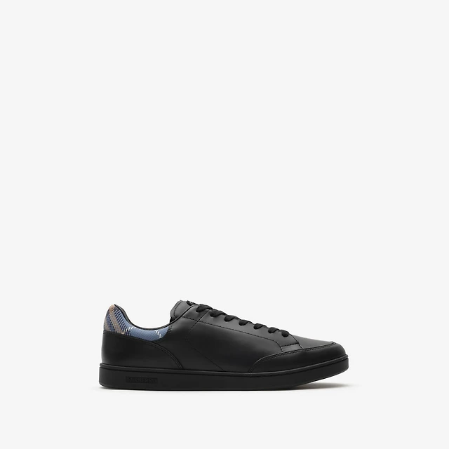 Leather and Check Terrace Sneakers in Black/wave blue - Men | Burberry® Official