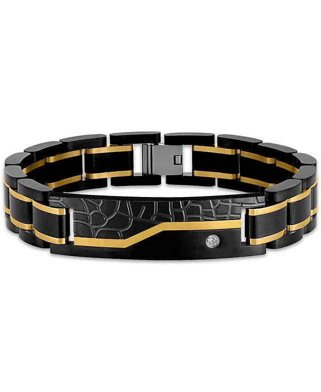 Esquire Men's Jewelry Diamond Watch Link Bracelet (1/20 ct. t.w.) in Black & Gold Ion-Plated Stainless Steel, Created for Macy's